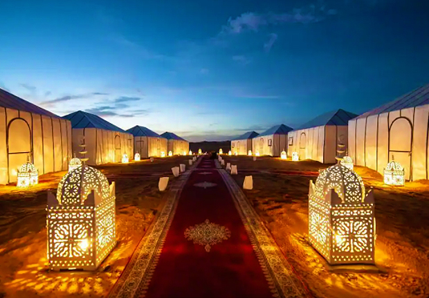 砂漠に敷かれたアラビックな絨毯。幻想的なランプ。満天の星空。